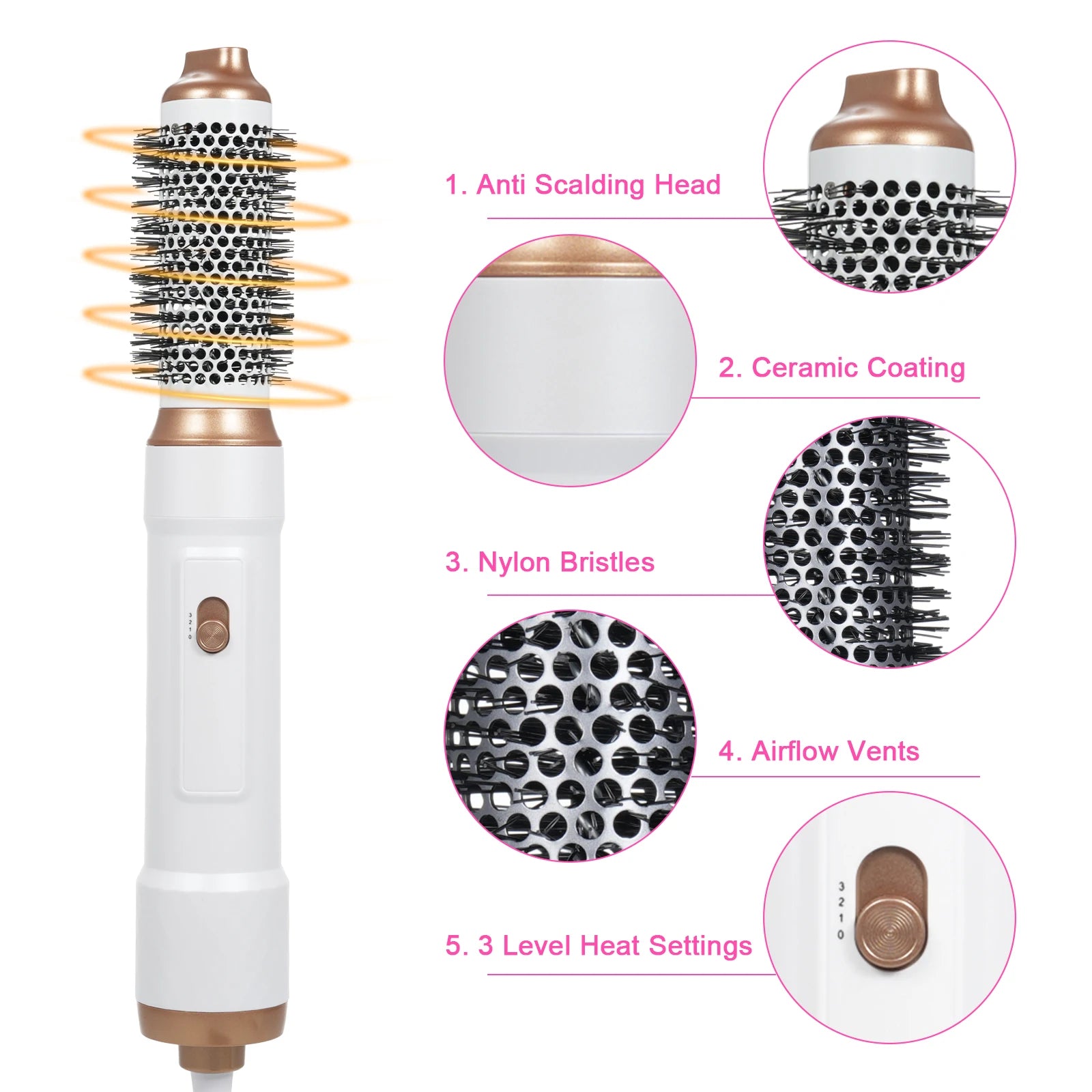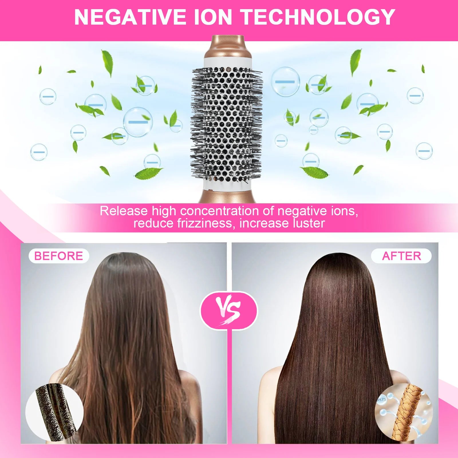 Vielseitige Styling-Optionen: Egal, ob Sie Ihr Haar föhnen, glätten, locken oder einfach kämmen möchten, mit diesem Werkzeug sind Sie bestens gerüstet.Es ist perfekt für alle Haartypen und -stile.
